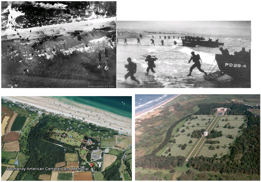 By mid morning, four beaches reported light casualties and were secure when the American beach code-named Omaha was close to disaster! Thousands of soldiers of the Big Red One, the US Army’s First Infantry Division along with elements of the 29th Infantry Division were pinned down on the beach and taking heavy casualties. The 116th regiment of the 29th  ID was practically wiped out by Germans fortified on the high cliffs (Pointe-du-hoc ) between the American beaches of Utah and Omaha. These enemy positions were raking soldiers disembarking from landing craft with lines of machine gun and mortar fire.  When two Navy Destroyers firing point blank approached dangerously close to the beach, the enemy finally abandoned some positions from the edge of the cliffs. Then, elite soldiers from the US Army’s 2nd and the 5th Ranger battalions fired grappling hooks, scaled the cliffs, and overpowered the enemy positions.